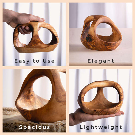 Panier de décoration rustique en bois d'olivier avec 3 poignées