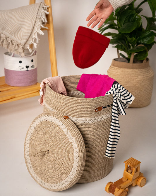 Panier a linge en Fil de Coton Tressé à la Main H50cm