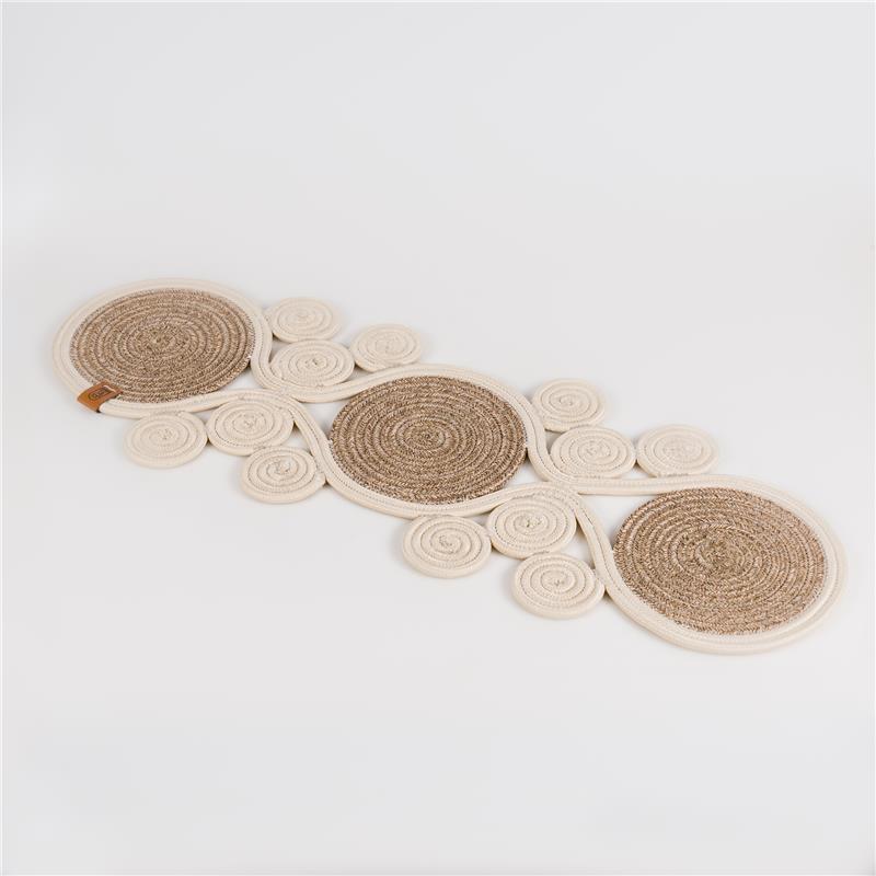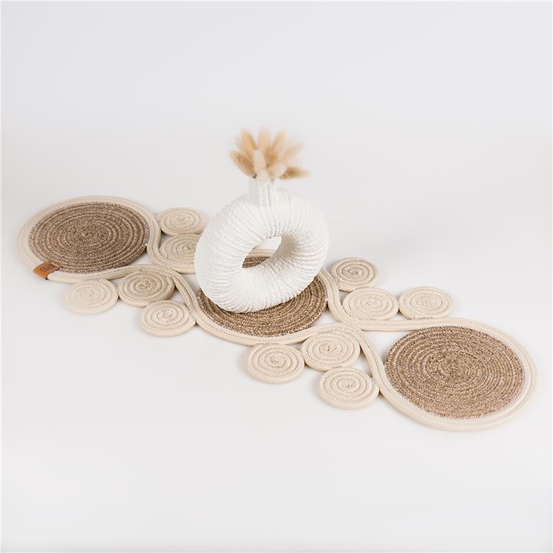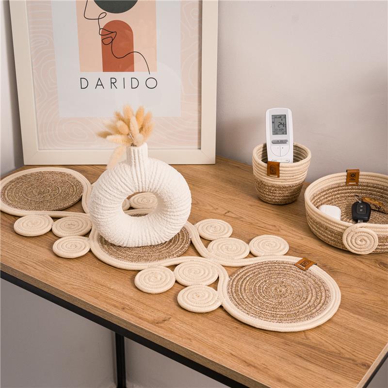 - Vase artisanal : design rond moderne, texture tressée naturelle (taille adaptée au chemin de table)