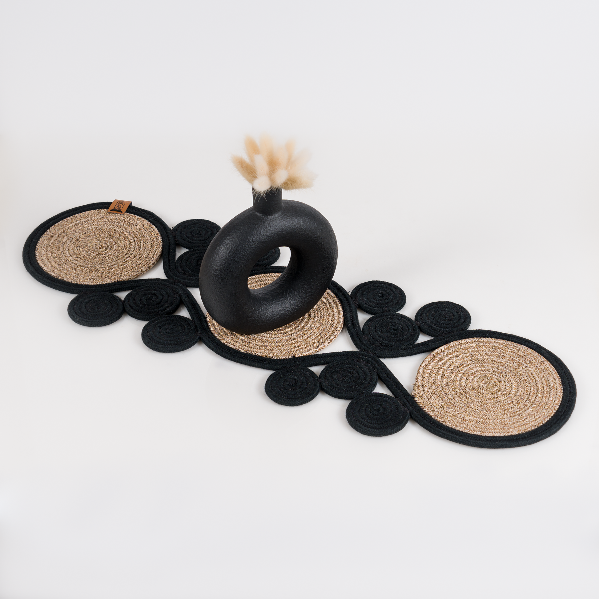 Apportez une touche de raffinement naturel à votre intérieur avec l’ensemble Alias, composé d’un chemin de table en fils tressés et d’un vase artisanal assorti