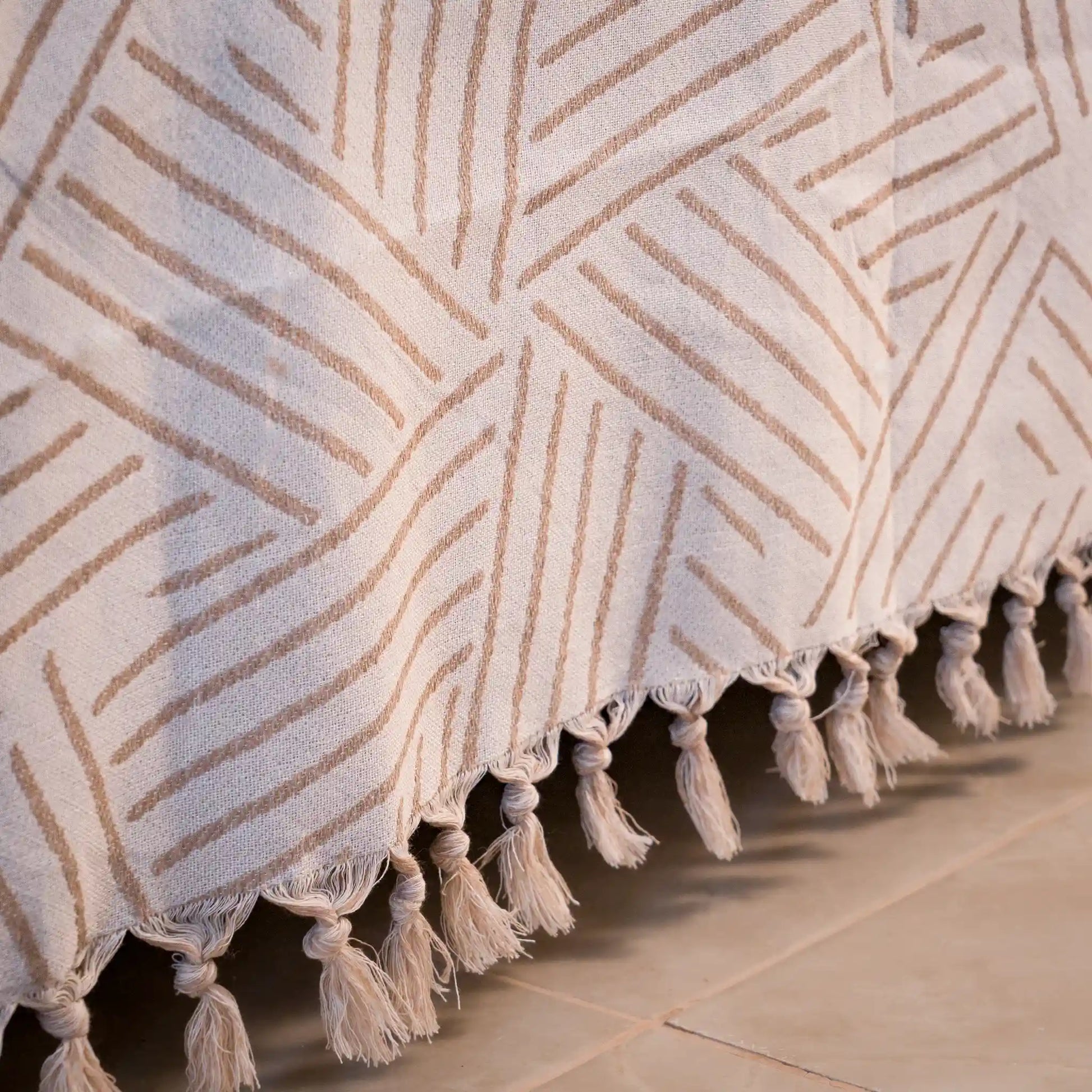 - Polyvalence d’Utilisation : Utilisable comme plaid douillet sur un canapé, couvre-lit élégant pour une chambre à coucher, ou même comme pièce artistique accrochée au mur, le Jeté Arcadia s’adapte à toutes vos envies.