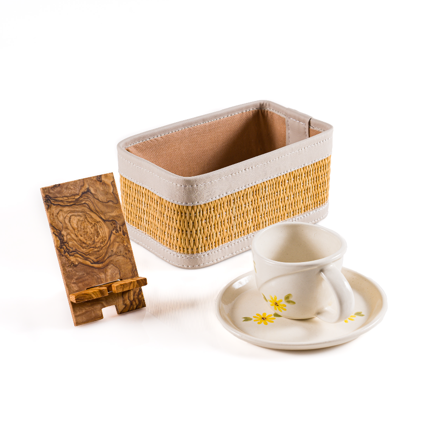 Ce coffret combine artisanat tunisien et praticité au quotidien, idéal pour organiser votre espace de travail ou accompagner vos moments de pause.