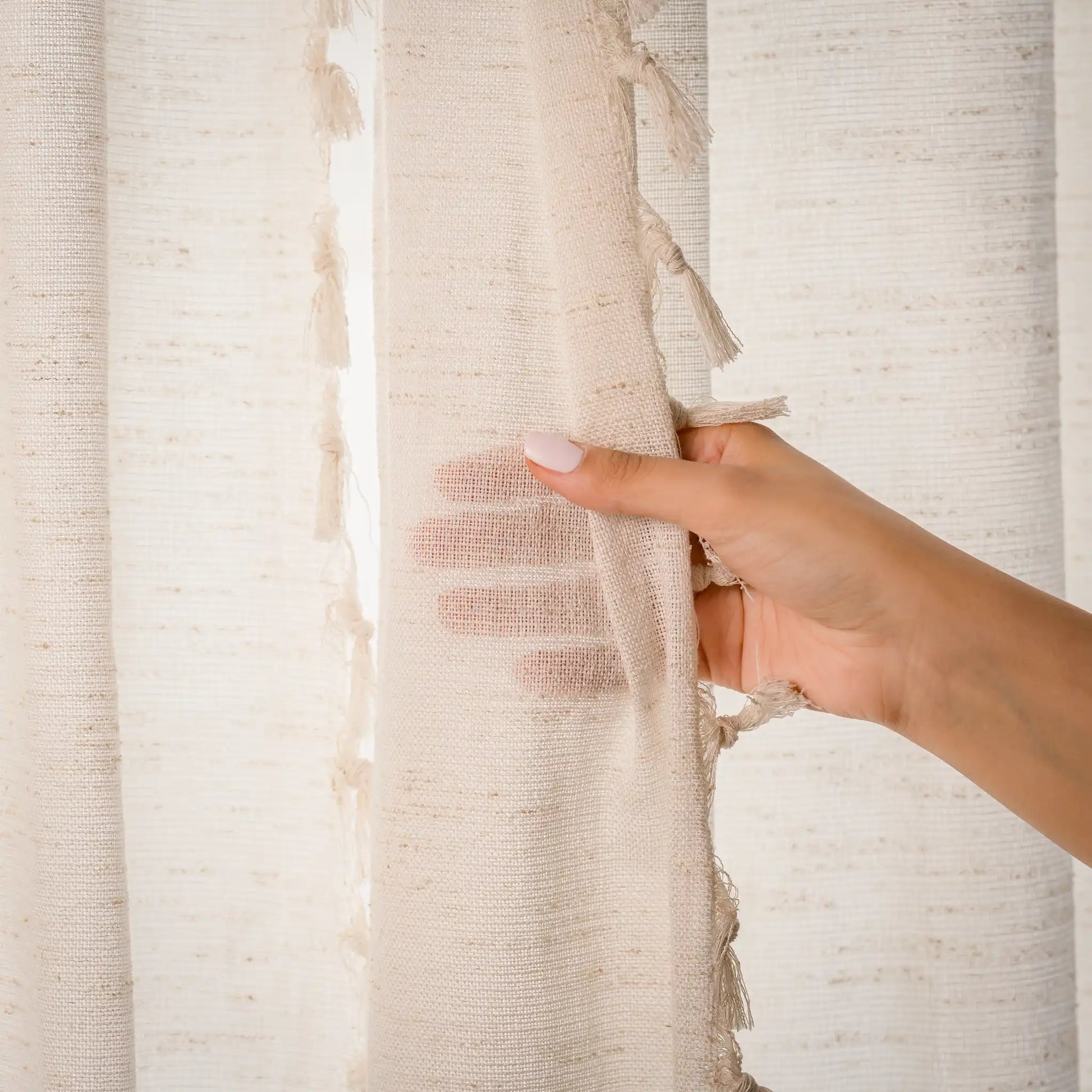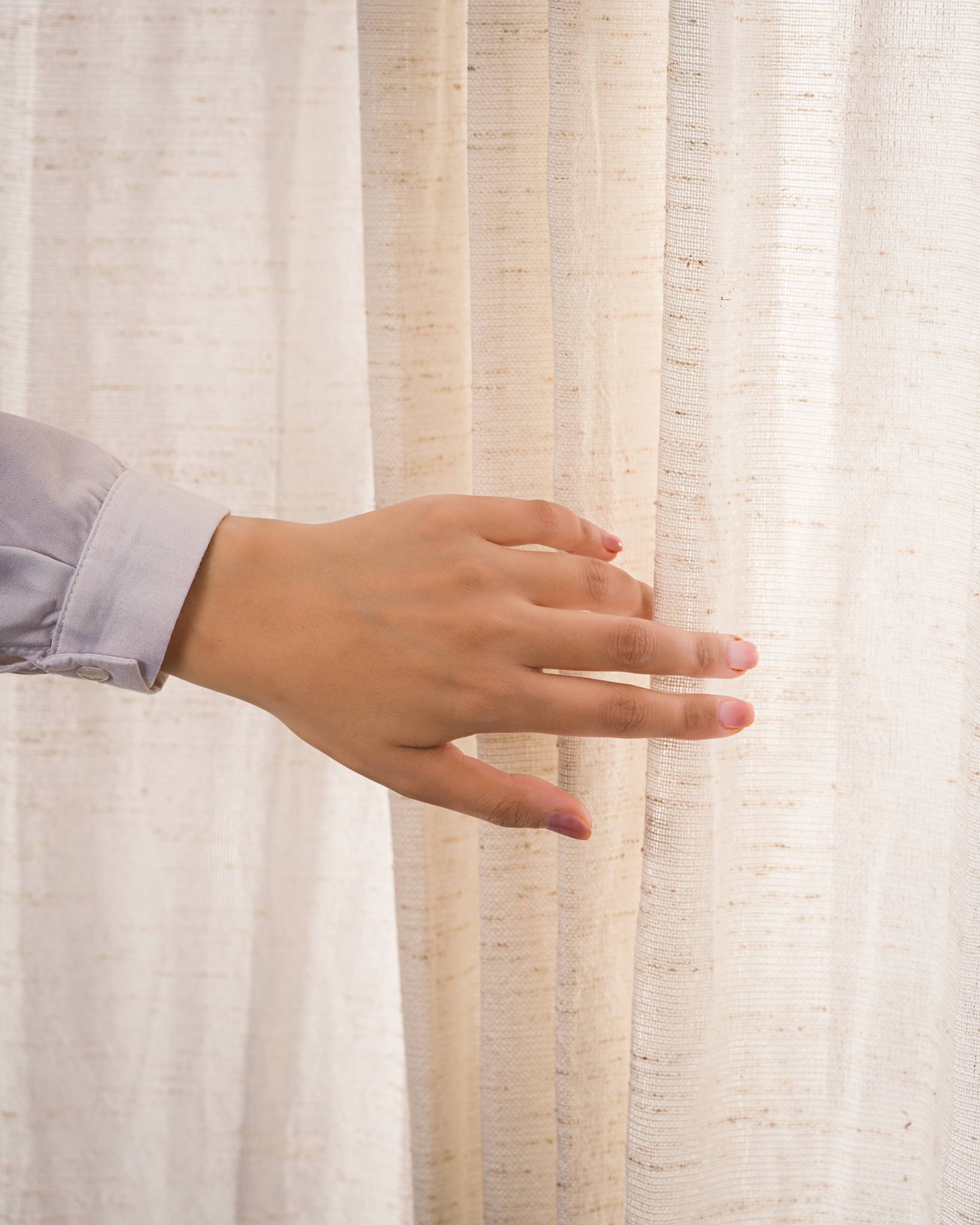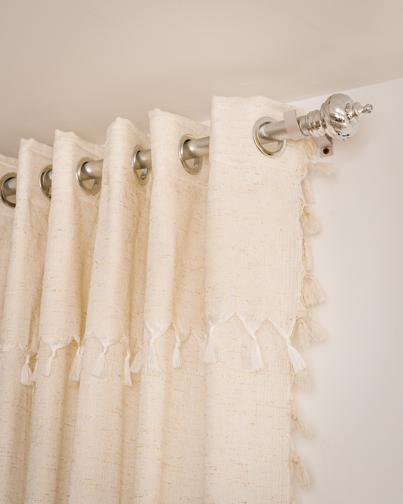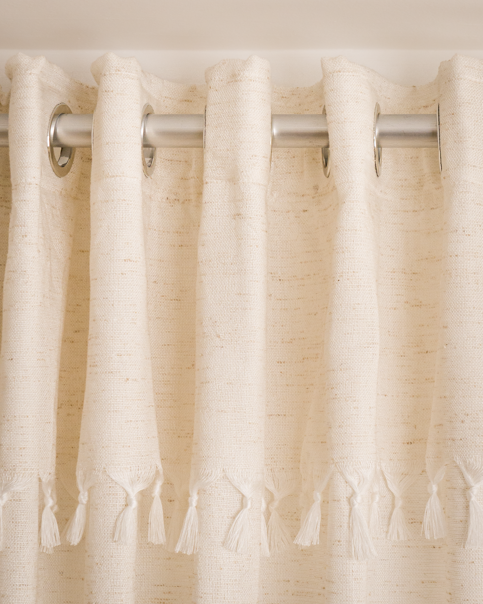 Rideau Anneau Artisanal 6 mètre en lin effet chiné couleur ecru, zezia
