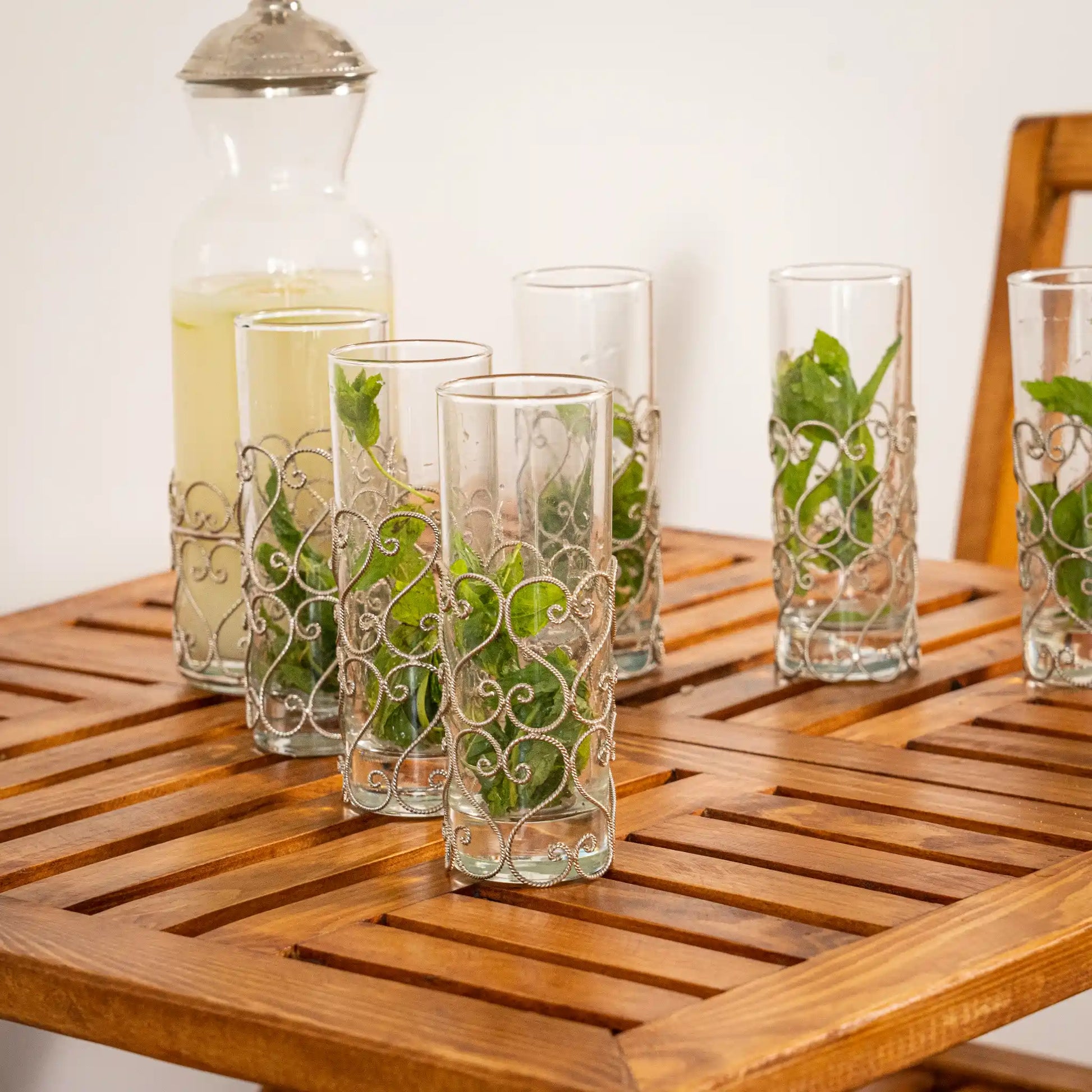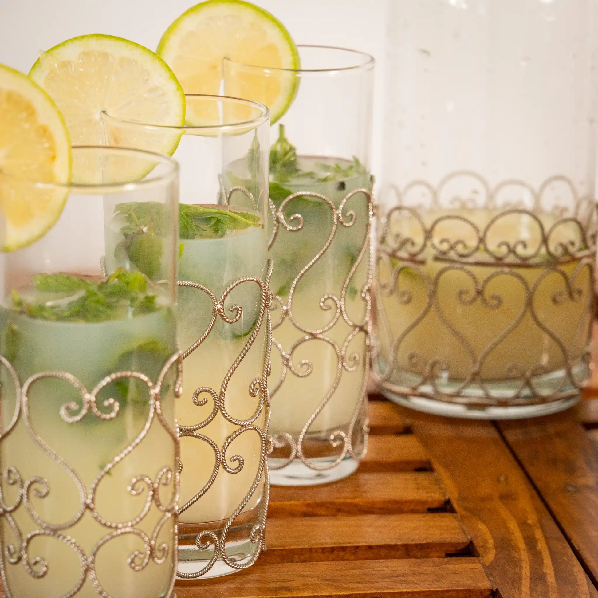 Ce service unique marie tradition et modernité, parfait pour sublimer vos boissons : eau, jus frais, citronnade, cocktails ou même boissons chaudes