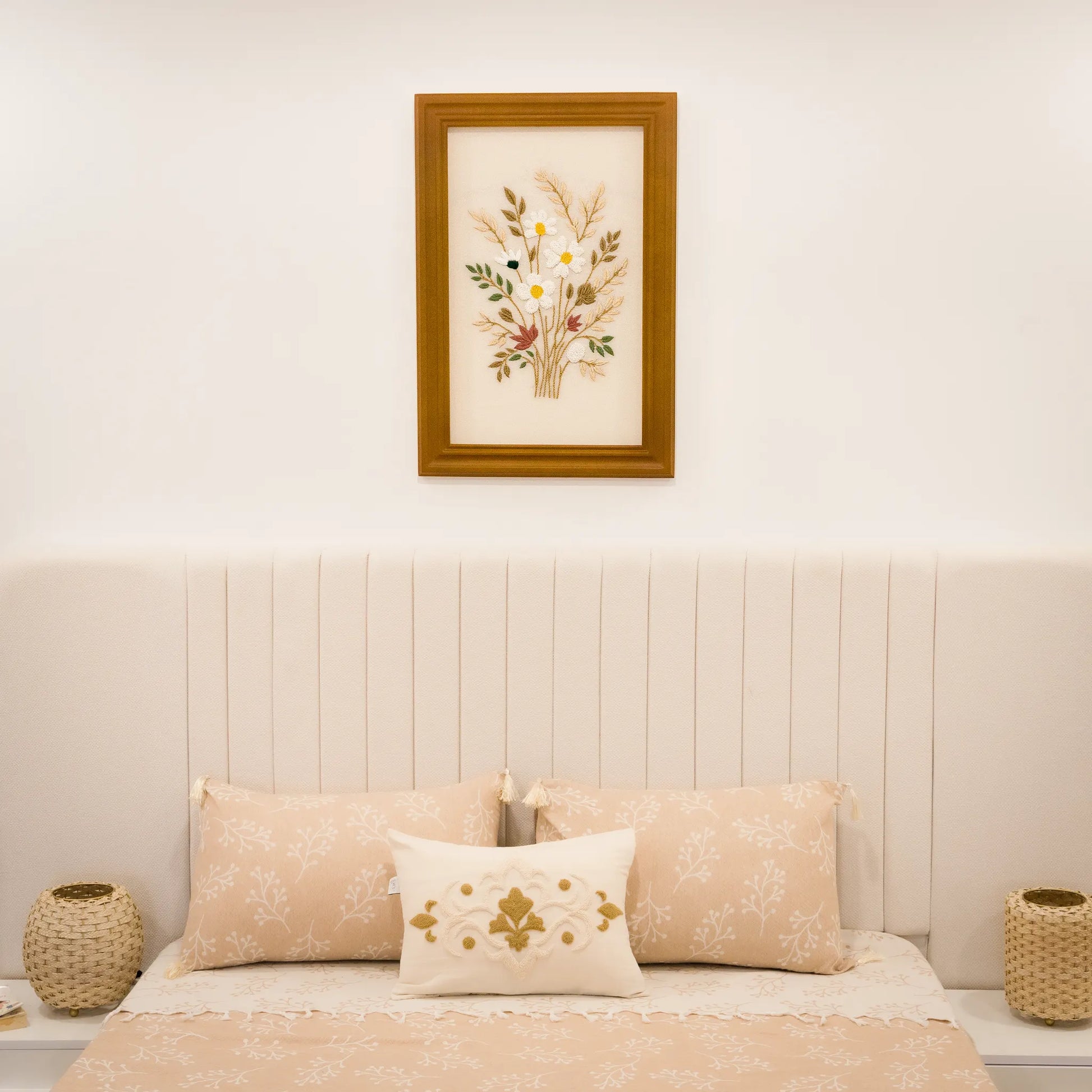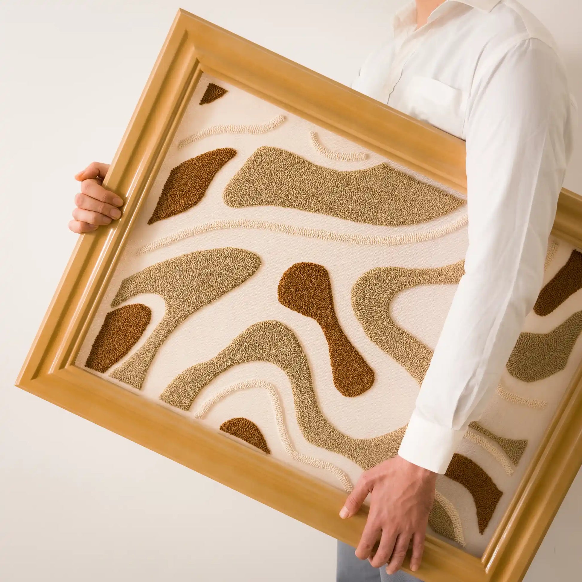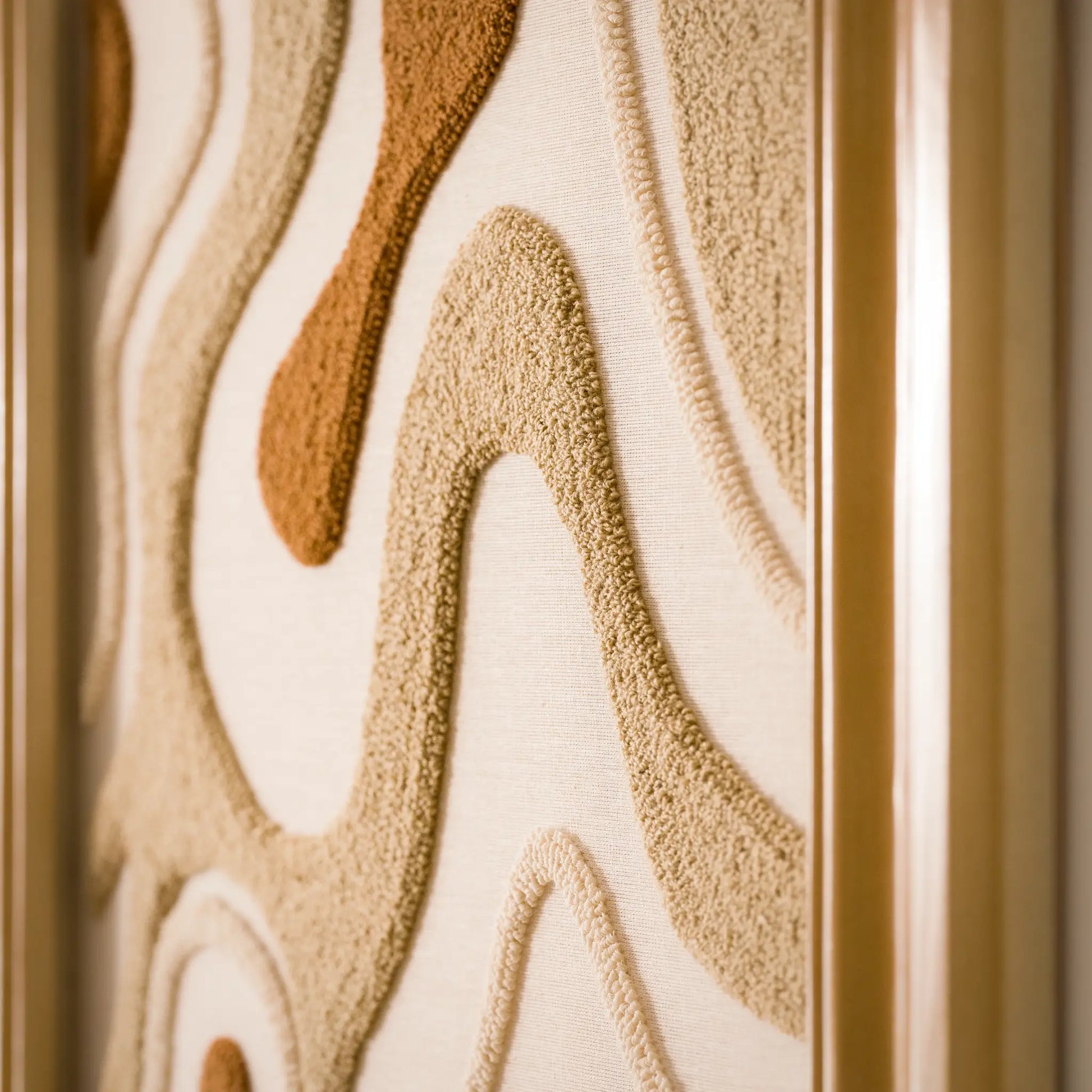 Chaque pièce est le fruit d’un travail artisanal qui fait la part belle aux motifs en relief et aux compositions équilibrées ; qu’elles soient florales, abstraites, ou inspirées de la calligraphie, ces compositions racontent une histoire et apportent une identité à votre espace. Grâce à leur style à la fois sobre et expressif, ces cadres décoratifs trouvent facilement leur place dans tous les univers décoratifs.