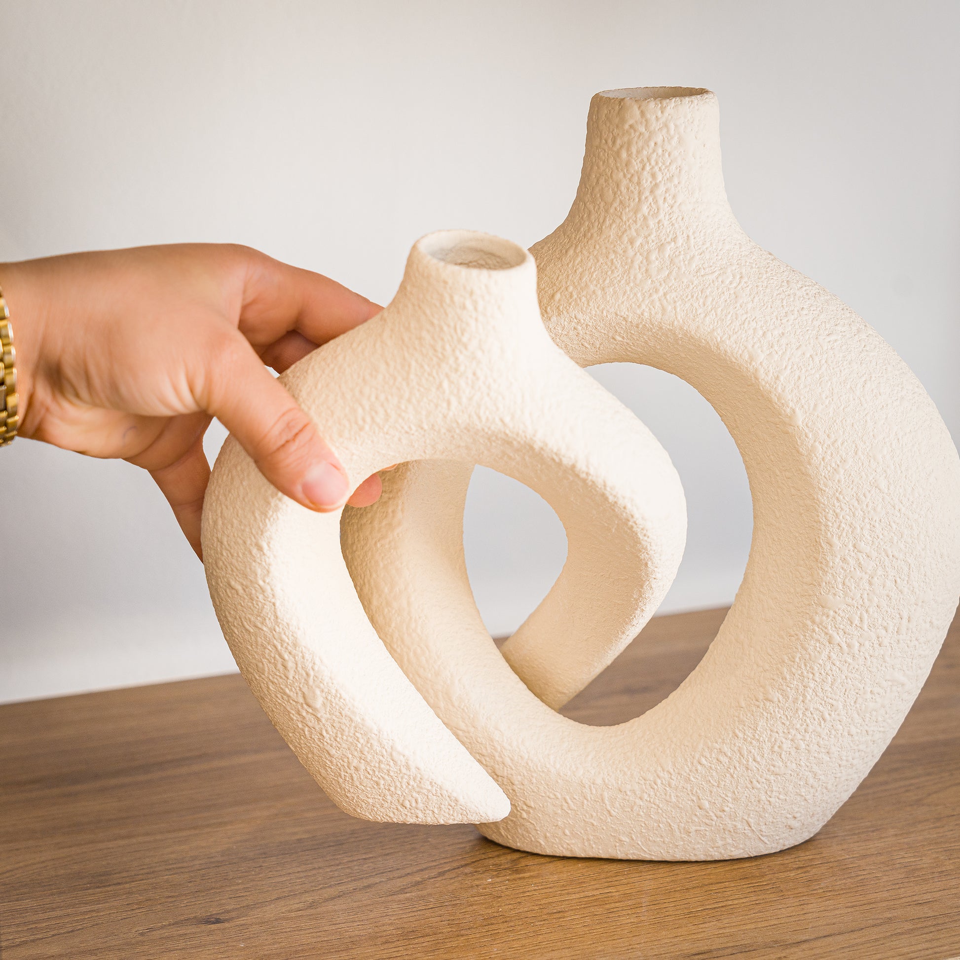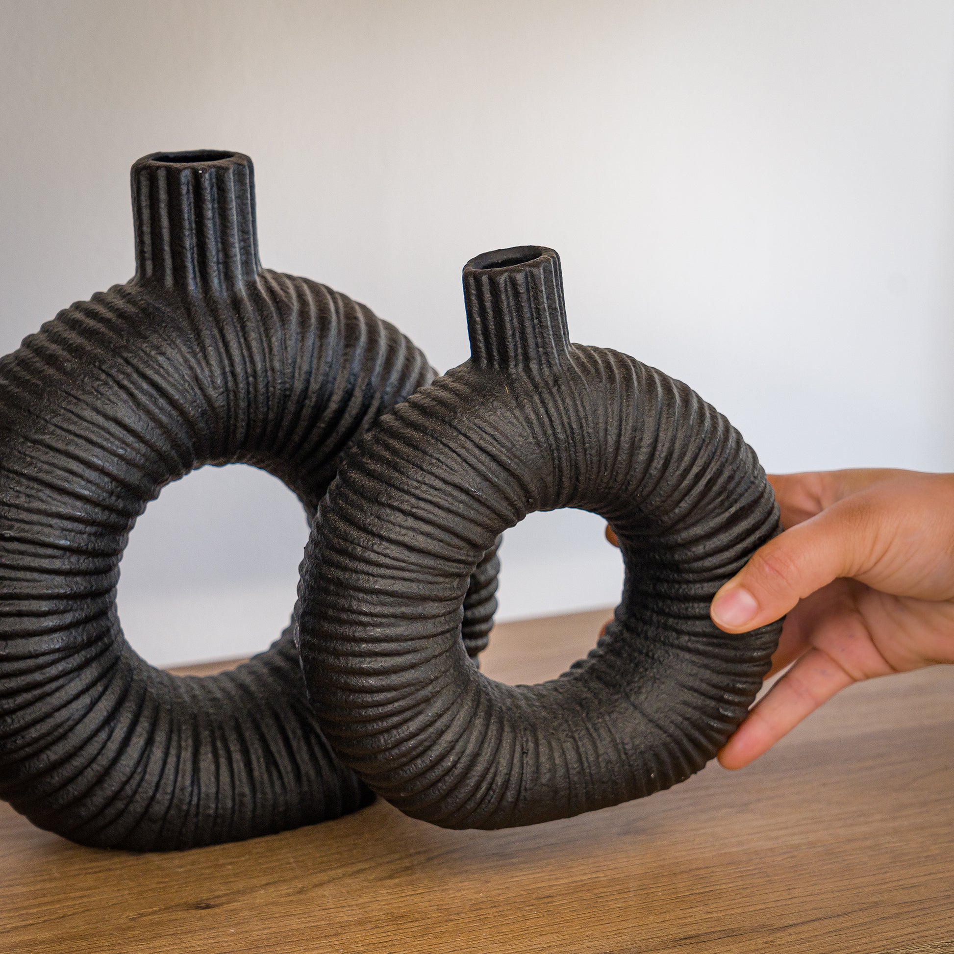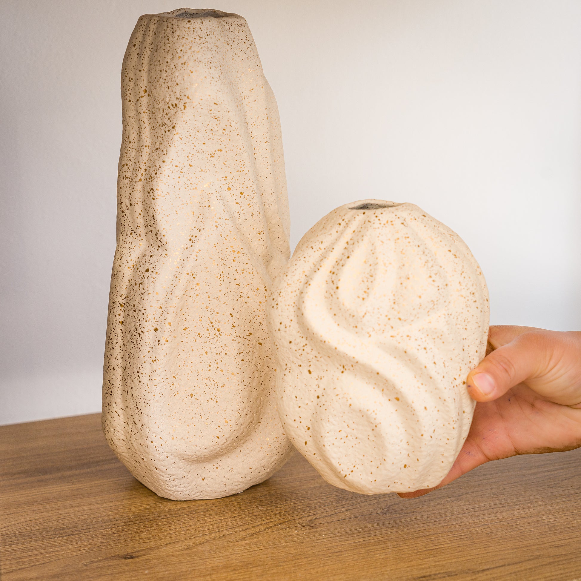 Ajoutez une touche artistique et chaleureuse à votre espace avec notre collection de vases décoratifs façonnés en pâte rouge céramique. Chaque pièce est minutieusement réalisée pour mêler design contemporain et charme artisanal. Disponibles en plusieurs formes, ces vases deviennent le point focal de toute décoration