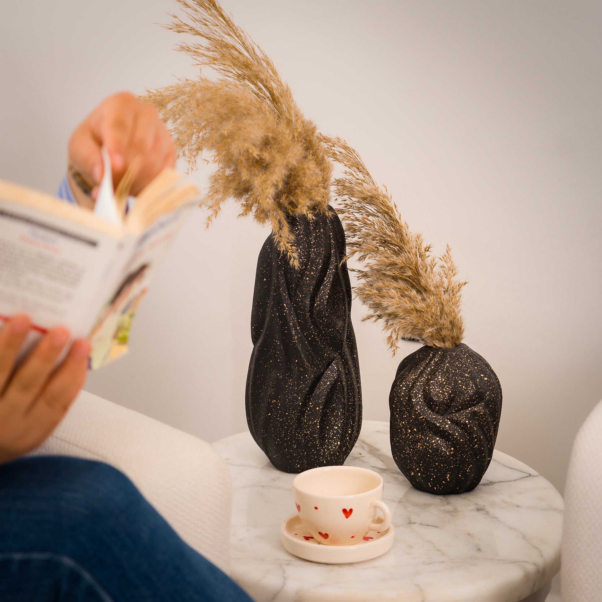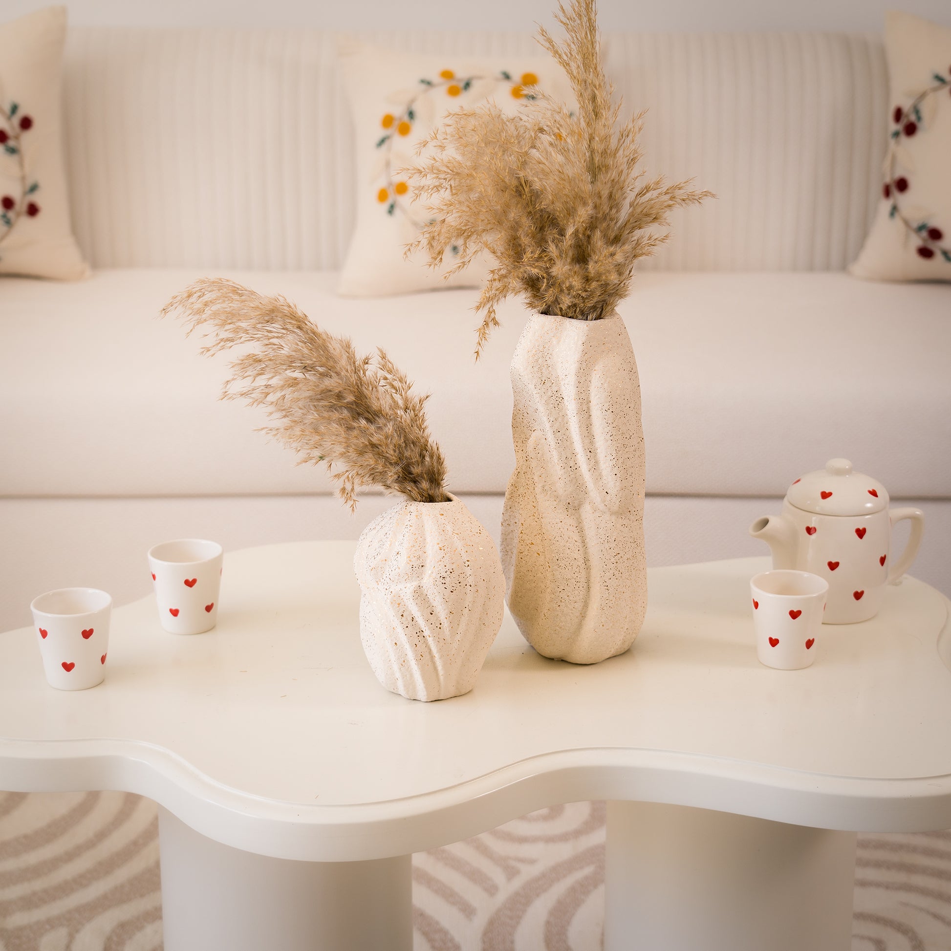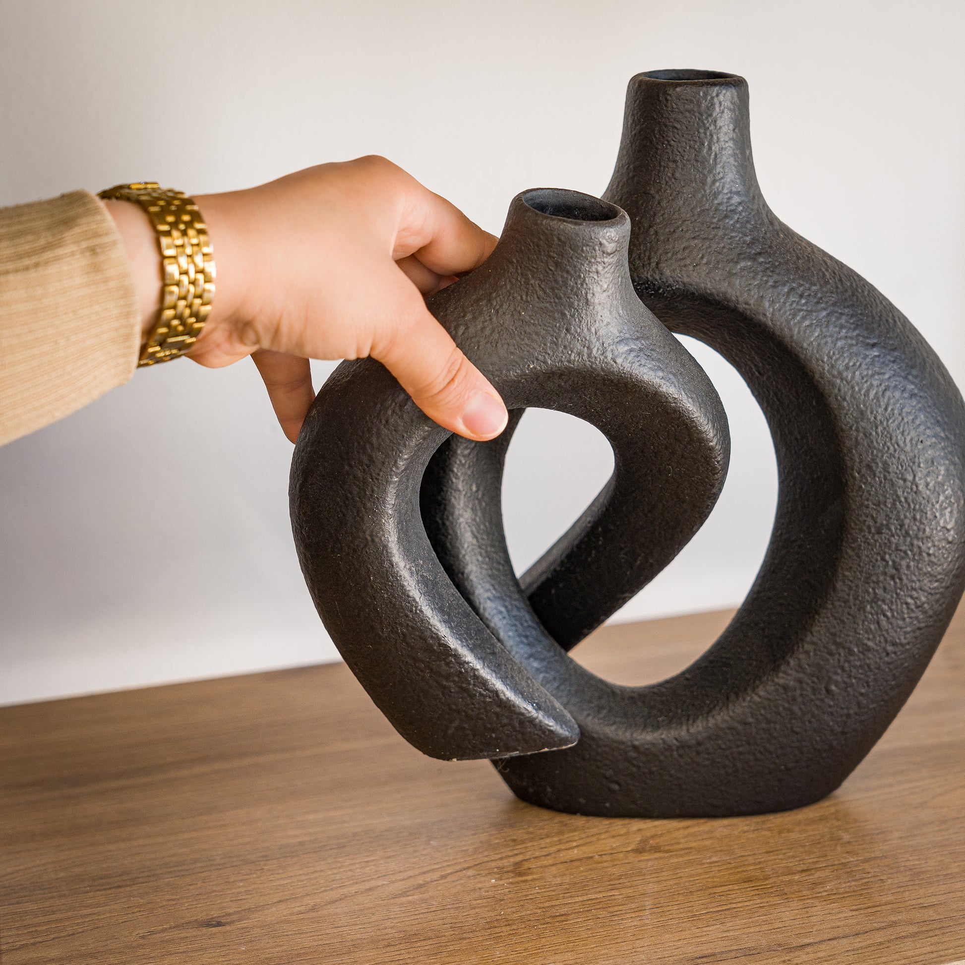 Ajoutez une touche artistique et chaleureuse à votre espace avec notre collection de vases décoratifs façonnés en pâte rouge céramique. Chaque pièce est minutieusement réalisée pour mêler design contemporain et charme artisanal. Disponibles en plusieurs formes, ces vases deviennent le point focal de toute décoration