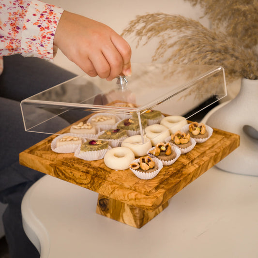 Présentoir Elva en Bois d’Olivier avec Couvercle Plexiglass