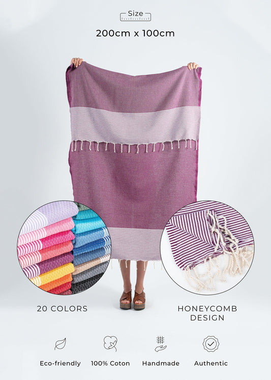 Darido Serviette de Hammam en nid d'abeille en coton - XL